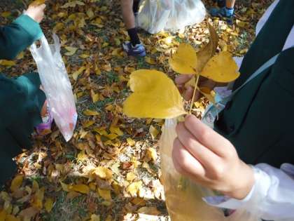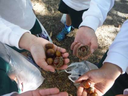 次回の土曜授業で、今日拾ってきた葉っぱやドングリで工作をする予定です。何ができるかな?
