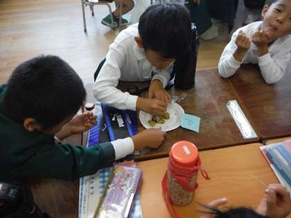 「おいしい」「甘い」「秋みつけの疲れがとれた」1年生も大満足の様子でした。