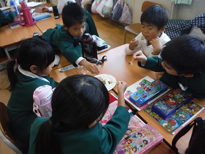 つくった大学いもは、1年生のお友だちにも食べてもらいました。