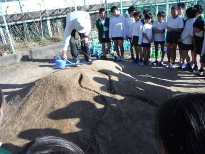 5年生は京都技師会の竹内篤雄先生をお招きして「流れる水のはたらき」の特別授業を行いました。
