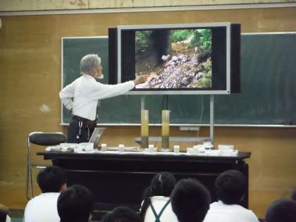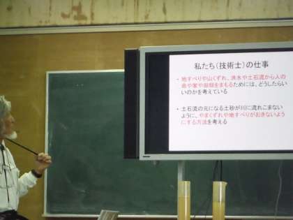 再び多目的室に戻って、土石流のビデオ、アニメを見ました。映像を見て、土石流の恐ろしさや土石流発生のメカニズムがわかりました。