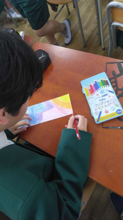 図工の作品づくり。きれいな色づかいですね!
