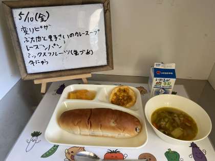 豚肉と野菜のカレースープ煮もカレー味で食べやすくおいしいと食缶が空っぽのクラスが多かったです。