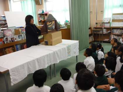 今日のお話は「だんごむしのころちゃん」でした。今日もたくさんの児童が図書室に訪れました。ころちゃんがピンチになる度、悲鳴があがっていました。