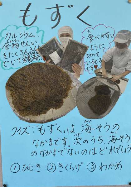 今日は、沖縄産のもずくをっ使った「もずくのスープ」で登場しました。。