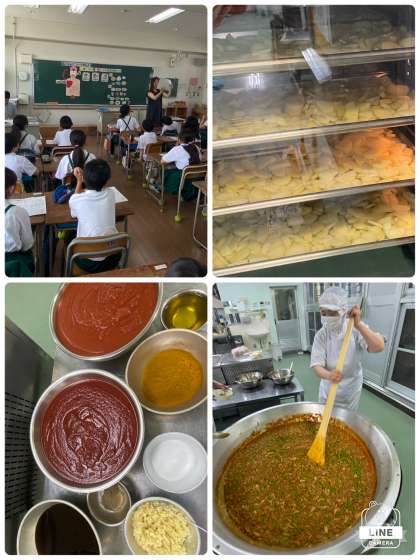 タコライスともずくのスープ、焼きじゃが、どのクラスも食缶の中は空っぽでした。