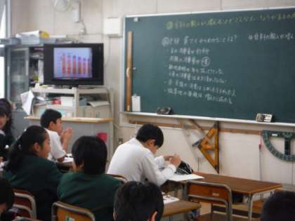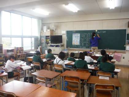 5年生は、1時間目は1組が社会科、2組が理科、2時間目が算数科、3時間目が作品鑑賞でした。