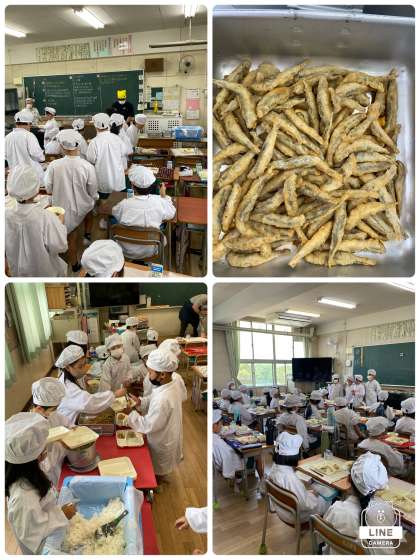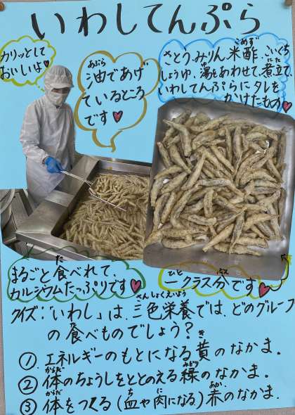 骨まで食べられるてんぷらは子どもたちにも好評で、きれいに食べることができていました。