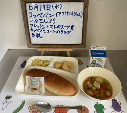 よく煮こまれてうまみが豊富なスープは、トマトが苦手な児童にも食べやすかったようです。