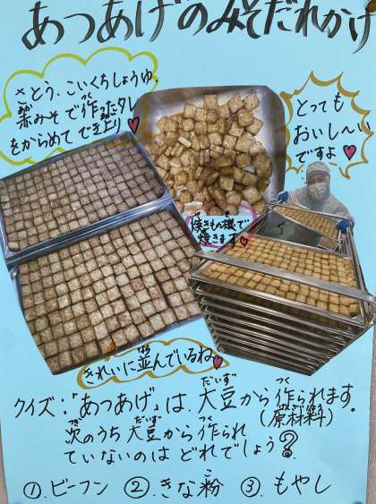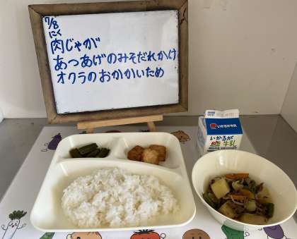 肉じゃが、オクラのおかかいため、子どもたちや教職員にも人気のあつあげのみそだれかけは、ごはんが進む献立でした。