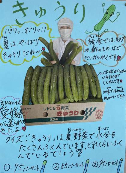 クイズの答えは、3番です。水分補給には、夏野菜も大活躍!!
