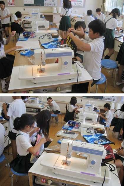 ひもの通し方がよくわからなくて悪戦苦闘していた児童もいましたが、先に完成した人から教えてもらいながら 無事完成しました。