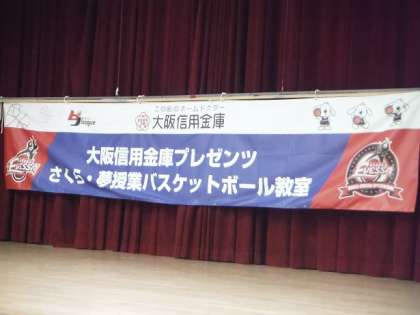 今日は、プロバスケットチーム大阪エヴェッサのカツコーチとツヨシコーチにバスケットボールの指導をしていただきました。