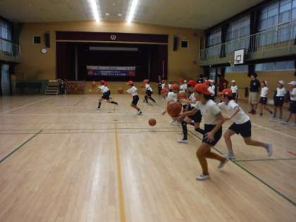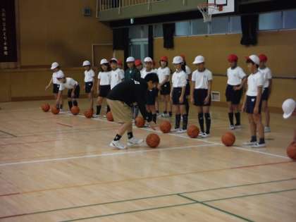 次にボールを使った運動です。ボールを転がしたり、ボールを手のひらや手の甲にのせて運んだりしました。