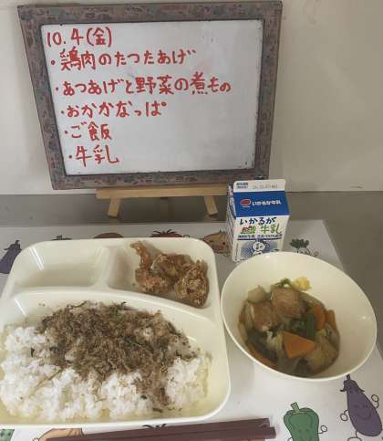 今日は、給食人気ランキング上位の「鶏肉のたつたあげ」でした。