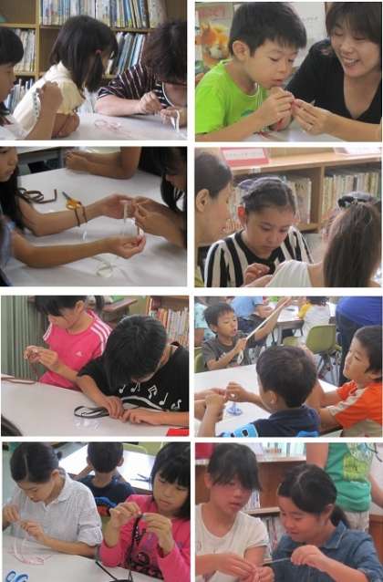 今回は、ビーズ細工(首かけストラップつき)でした。