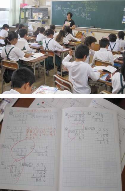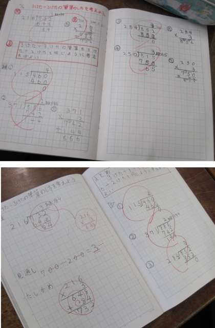 4年生の算数の時間の様子です。わり算のひっ算を学習していました。
