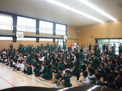 その後、地丸先生から冬休みのくらしについてのお話と、なわとびチャレンジでなわとび名人になった児童の紹介がありました。