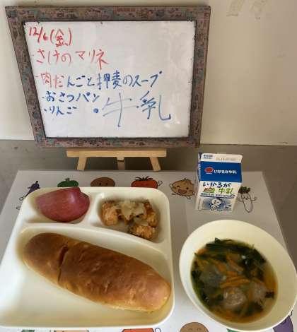 子どもたちに人気の献立で、、今日、「魚について知ろう」という学習で、魚の油の「DHA(ドコサヘキサエン酸)」脳を活性化して、記憶力を高める。「EPA(エイコサペンタエン酸)」血液をさらさらにするなどの効果があることを5年生は学習したばかりなので「おいしーい、かしこくなったかも」など言ってモリモリ食べてくれました。