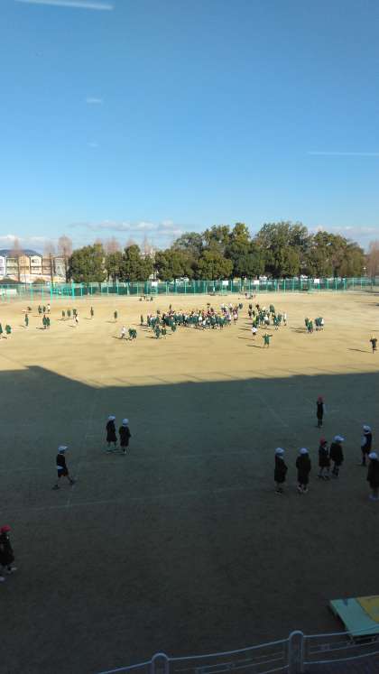 地震がいつ来ても身を守る行動をとることができるようにします。休み時間でしたが、放送に耳を傾け指示を守って行動しています。