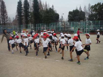 今日から1月28日(木)までかけ足チャレンジです。1月8日〜14日までは高学年は5分間、低・中学年は最初の1分は歩いてそれから4分間走ります。競走ではなく、ゆっくりでもいいので自分のペースで最後まで走り続ければOKです。