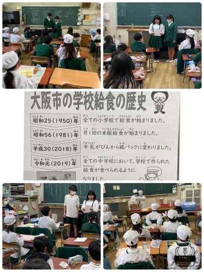 今週は学校給食週間です。給食委員会でクラスを回っったり、放送委員会が大阪市の歴史を紹介したりしています。