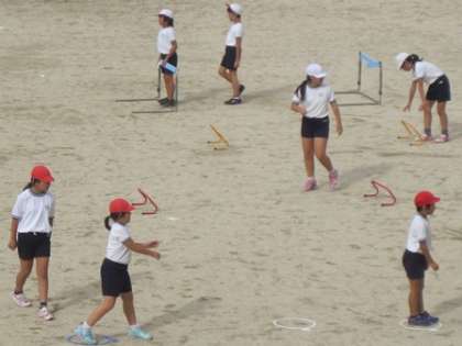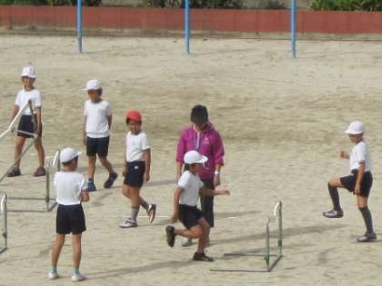 ミニハードルも使って練習コースを作ってハードルの練習をしていました。