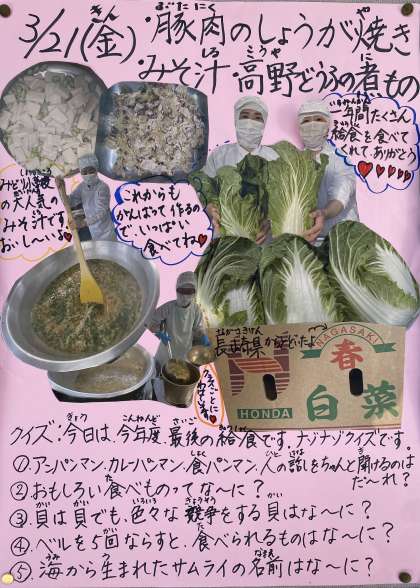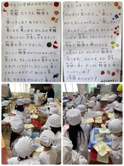食缶を返す時、「ごちそうさまでした!1年間ありがとうございました!」と、どのクラスも大きな声であいさつをしていました。