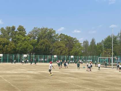 昼休みに運動場に出ると、子どもたちは広い運動場で元気いっぱいに遊んでいました!