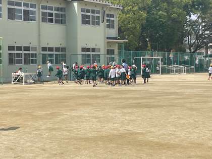 先生も一緒に運動場で遊んでいる光景を見て、とても嬉しく思いました。