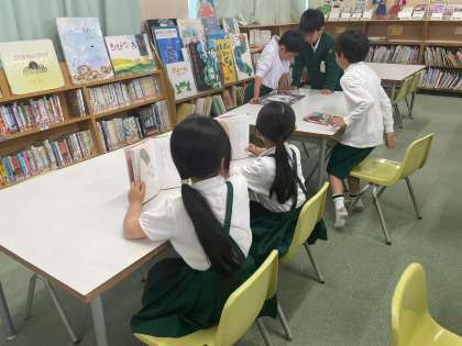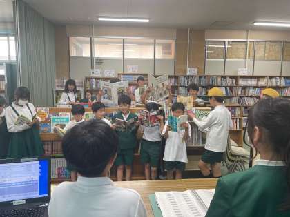 図書館へ行ってみると、たくさんの子どもたちが本を読んでいました。みどり小学校には読書好きな子どもたちがたくさんいるのだなあと嬉しくなりました。
