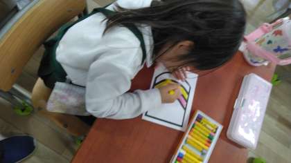 1年生、みんなで「こいのぼりの鱗」を作ります。綺麗に塗り込めています。みんなで完成が楽しみですね!