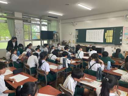 詩を読んで、その文章のもつ意味、言葉のもつ印象についてプリントに書き込み、それぞれの考えを交流し合いました。