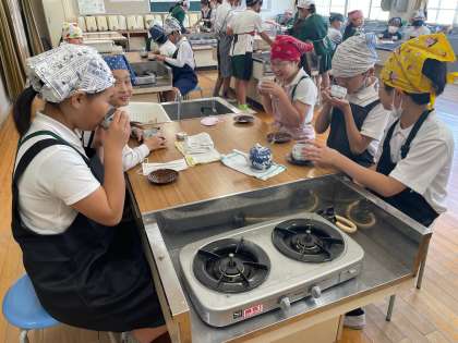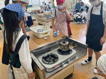 今日は、家庭科室の使い方やガスコンロの正しい使い方を学ぶことを目的として、お茶を入れる学習を行いました。