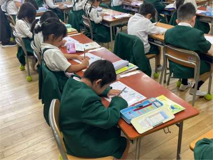 今日はあいにくの雨模様ですが、みどり小学校の子どもたちは元気いっぱいに活動しています。