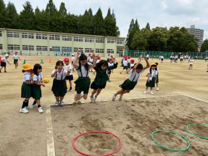 たくさんの子どもたちが参加して、より遠くに跳ぶ練習をしていました!
