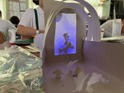 6年生は図画工作科で、紙とLEDライトを使ったランプ作りに取り組んでいます。