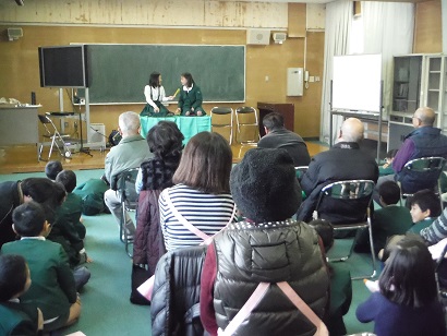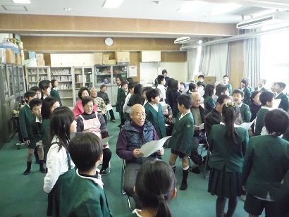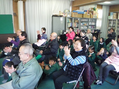 4時間目は、地域の方へのお礼の会がありました。落語を披露したり、地域の方を囲んで「たきび」「雪」を歌ったりして、地域の方にも、喜んでいただけたようでした。