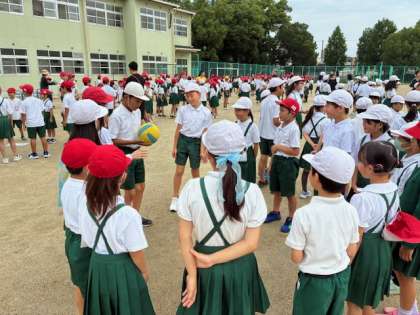 全学年 児童集会 ボール回しゲームで盛り上がりました!