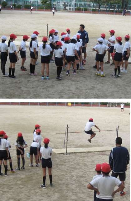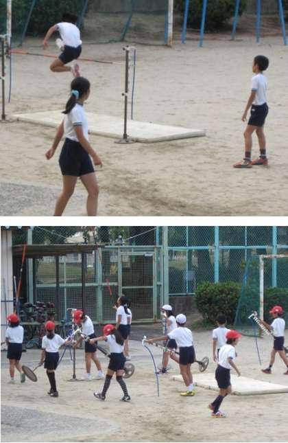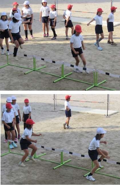 それぞれ挑戦する高さに分かれて、高跳びをしました。