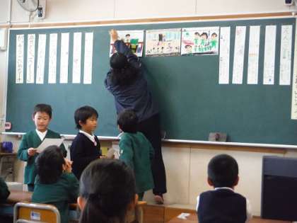 1年生は1組と2組が学級休業なので3組だけが学習参観でした。1年間の思い出を発表していき、「こいぬのマーチ」の合奏で終わりました。