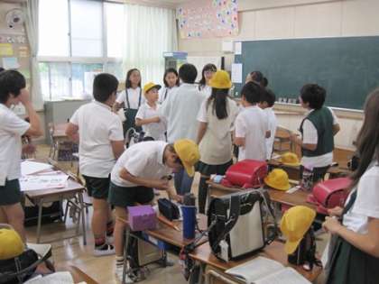 歯の模型を使ってする「歯みがきたいそう」の練習風景です