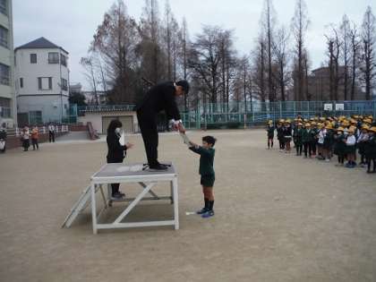 まず、防火・防災図画で努力賞をもらった児童の表彰がありました。