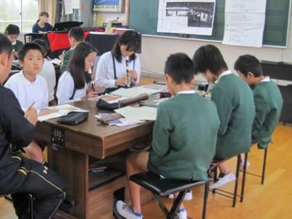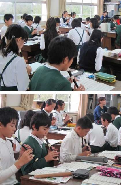 先生の伴奏に合わせて リコーダーを吹いていました。