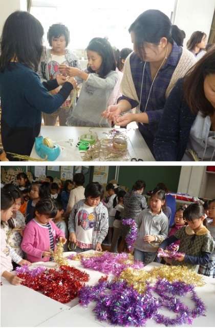 次に、リボンと丸い玉などの飾りをつけて完成です。