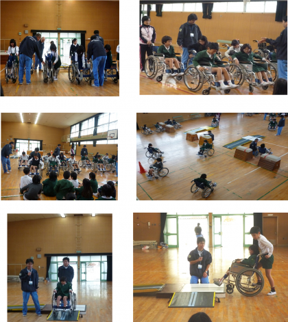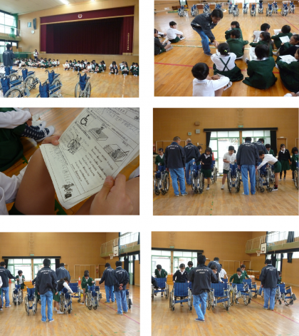 職員の方々を講師にお迎えし、車椅子に関する話や乗り方、支援の仕方を教えていただきました。