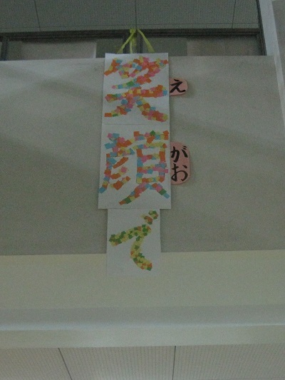 お昼過ぎに今日完成した「笑顔で」の文字が張り出されました。