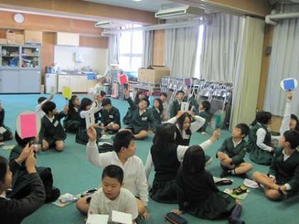 答え合わせのとき、正解していたらみんな大喜びでした。