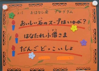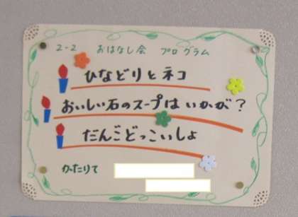 各クラスには、写真にあるような「プログラム」が飾られています(語り手の方の手作りで、同じものはありません)