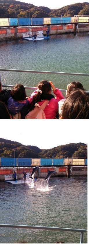 鳥羽マリンターミナルから遊覧船に乗り、イルカ島へ行き、イルカショーを見ました。